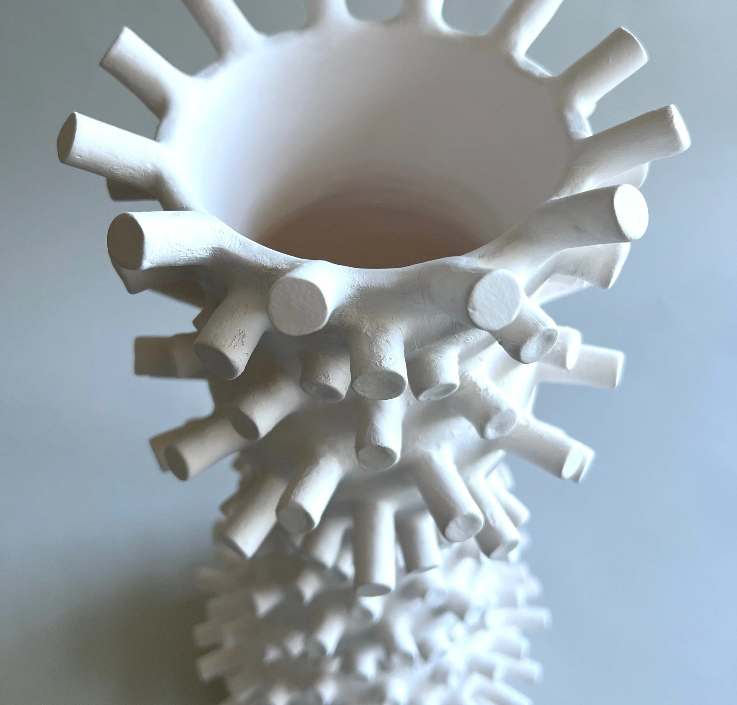 Pollen. Dispersed by animals, wind, and water, pollen grains are the source of reproduction in most terrestrial ecosystems. Under a microscope, pollen grains are fascinating, complex structures and a great pleasure to take inspiration from for creations in clay.